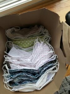 When preparing for a biweekly donation, packaging our masks is an important aspect that is often overlooked. Initially, when we began donating, we would put our masks into reusable Trader Joe’s or Safeway bags. Unfortunately, while donating, many nurses who would wait outside the hospital to pick up our masks would be confused by what was in the bags.