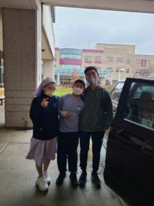 Joining us on the trip was one of our student volunteers, Juho. Juho has always been an excellent volunteer – showing his support during in-person events like the Ukraine fundraisers. On the trip, Juho helped bring in all the heart pillows and was there to move them into the Medstar Washington.